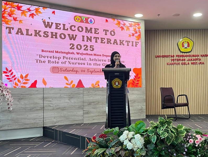 FIKES UPNVJ – Telah berlangsung kegiatan Talkshow Interaktif yang diselenggarakan oleh Himpunan Mahasiswa Program Studi Ilmu Keperawatan (HM-PSIK). Kegiatan berlangsung di Auditorium Lt.8 Merce, UPN "Veteran" Jakarta, Kampus Limo, Depok mulai pukul 06.30 s.d 15.50 WIB pada Sabtu, 6 September 2025 dengan membawakan tema “Kembangkan Potensi, Raih Mimpi: Peran Perawat dalam Era Global”. Kegiatan ini dihadiri oleh mahasiswa S1 Keperawatan Angkatan 2025, Dosen Program Studi Keperawatan Program Sarjana serta Narasumber. Bertujuan untuk meningkatkan pengetahuan dan pemahaman mahasiswa Program Studi Keperawatan Universitas Pembangunan Nasional “Veteran” Jakarta mengenai seorang perawat profesional sehingga mahasiswa keperawatan dapat membangun citra perawat ideal di mata masyarakat serta menciptakan perasaan bangga terhadap profesi perawat.