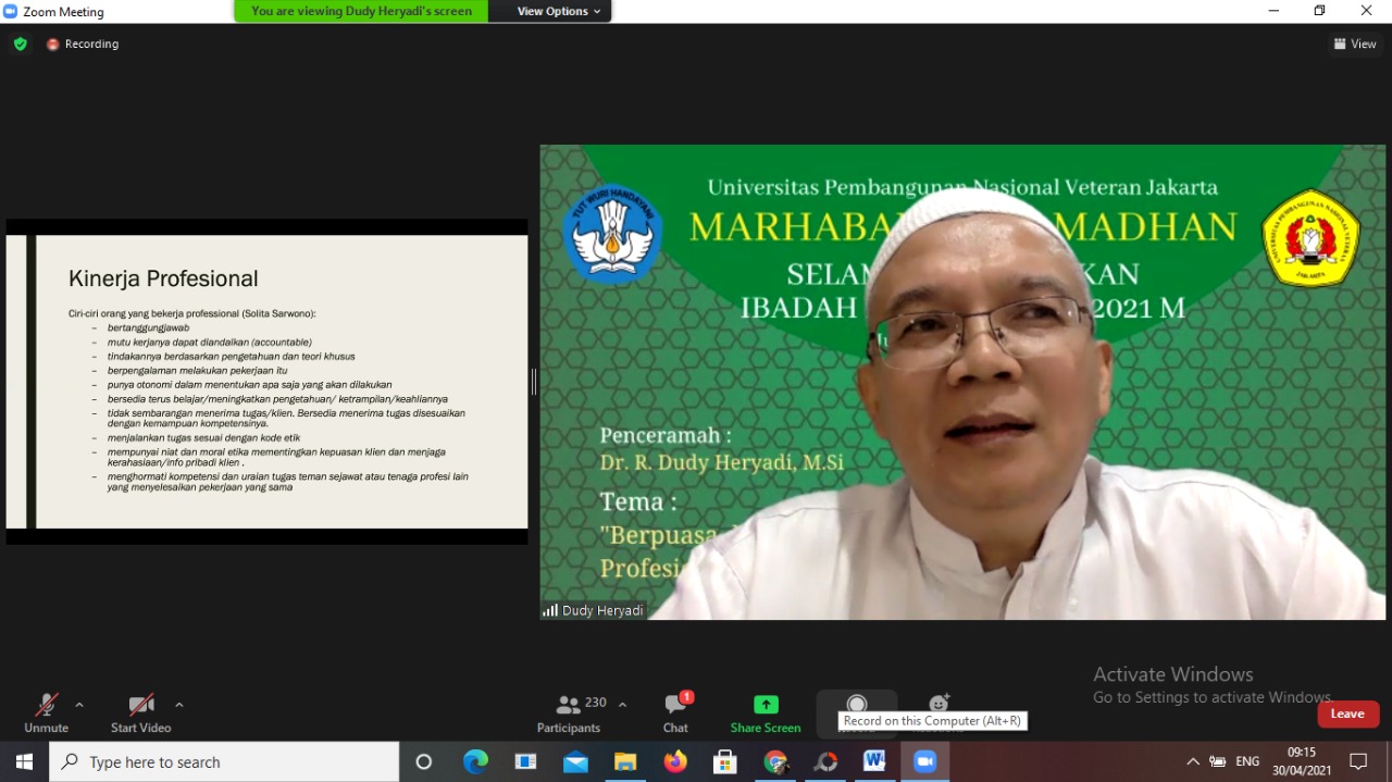 FIKES UPNVJ - Pada hari Jumat, 30 April 2021, Fakultas Ilmu Kesehatan Universitas Pembangunan Nasional Veteran Jakarta mengikuti kegiatan Kajian Peningkatan Kualitas Kinerja Pegawai dengan tema "Berpuasa dan Meningkatnya Kinerja Profesional" yang dilakukan secara...