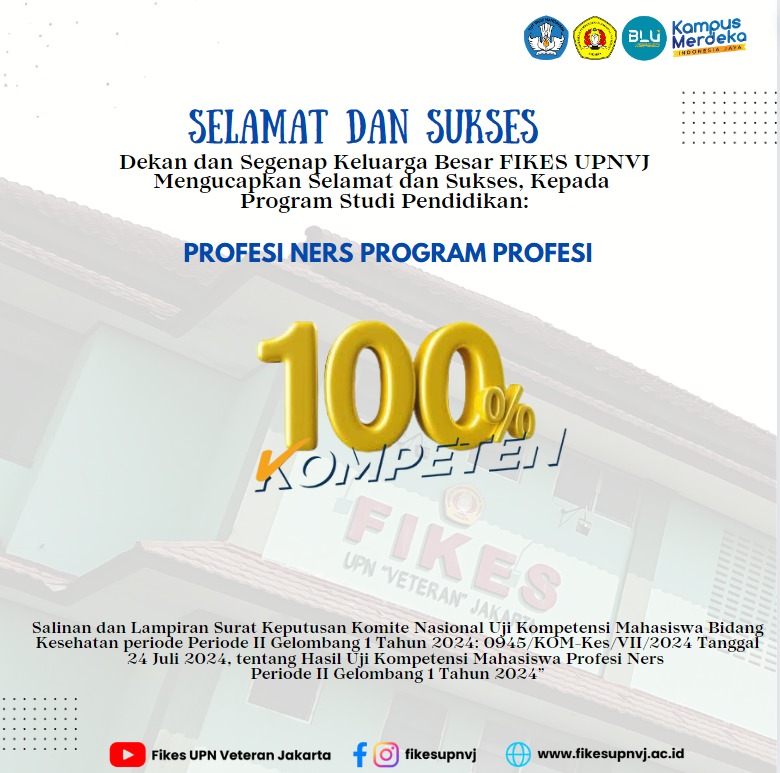 FIKES UPNVJ – Dekan dan Keluarga Besar mengucapkan Selamat atas peraihan 100% UKOM Mahasiswa Program Studi Profesi Ners Program Profesi FIKES UPN "VETERAN" JAKARTA. Bersama ini adalah Salinan dan...