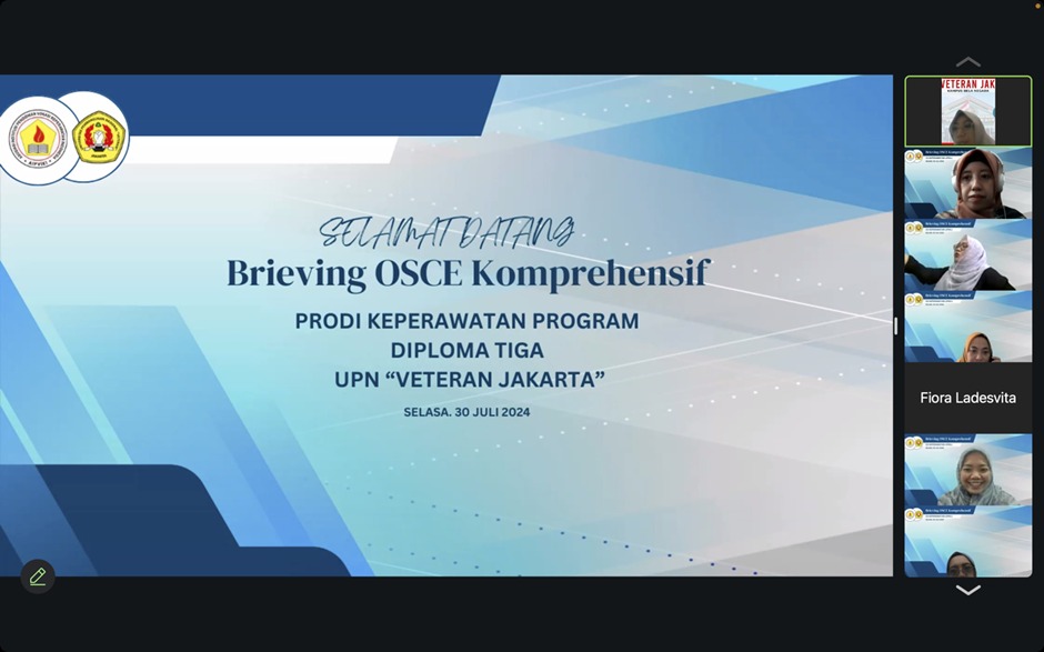 FIKES UPNVJ – Pada hari Selasa, 30 Juli 2024, dilaksanakan briefing H-1 OSCE berstandard Nasional Mahasiswa Program Studi Keperawatan Program Diploma Tiga FIKES UPN "VETERAN" JAKARTA. Briefing dibuka oleh Kaprodi...
