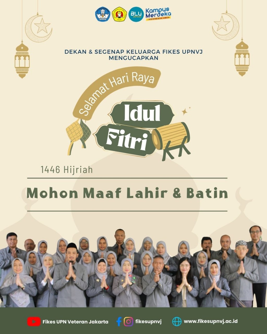 FIKES UPNVJ – Keluarga Besar Fakultas Ilmu Kesehatan UPN "Veteran" Jakarta Mengucapkan Taqabbalallaahu Minnaa Wa Minkum, Selamat Hari Raya Idul Fitri 1446 H
