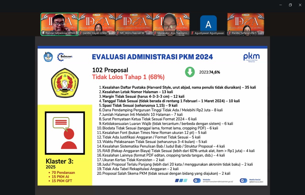 FIKES UPNVJ – Badan Eksekutif Mahasiswa (BEM) Fakultas Ilmu Kesehatan UPN "Veteran" Jakarta telah melaksanakan kegiatan Seminar Program Kreativitas Mahasiswa IDEA (Innovation, Development, Expression, and Action) 2025 dengan tema ...