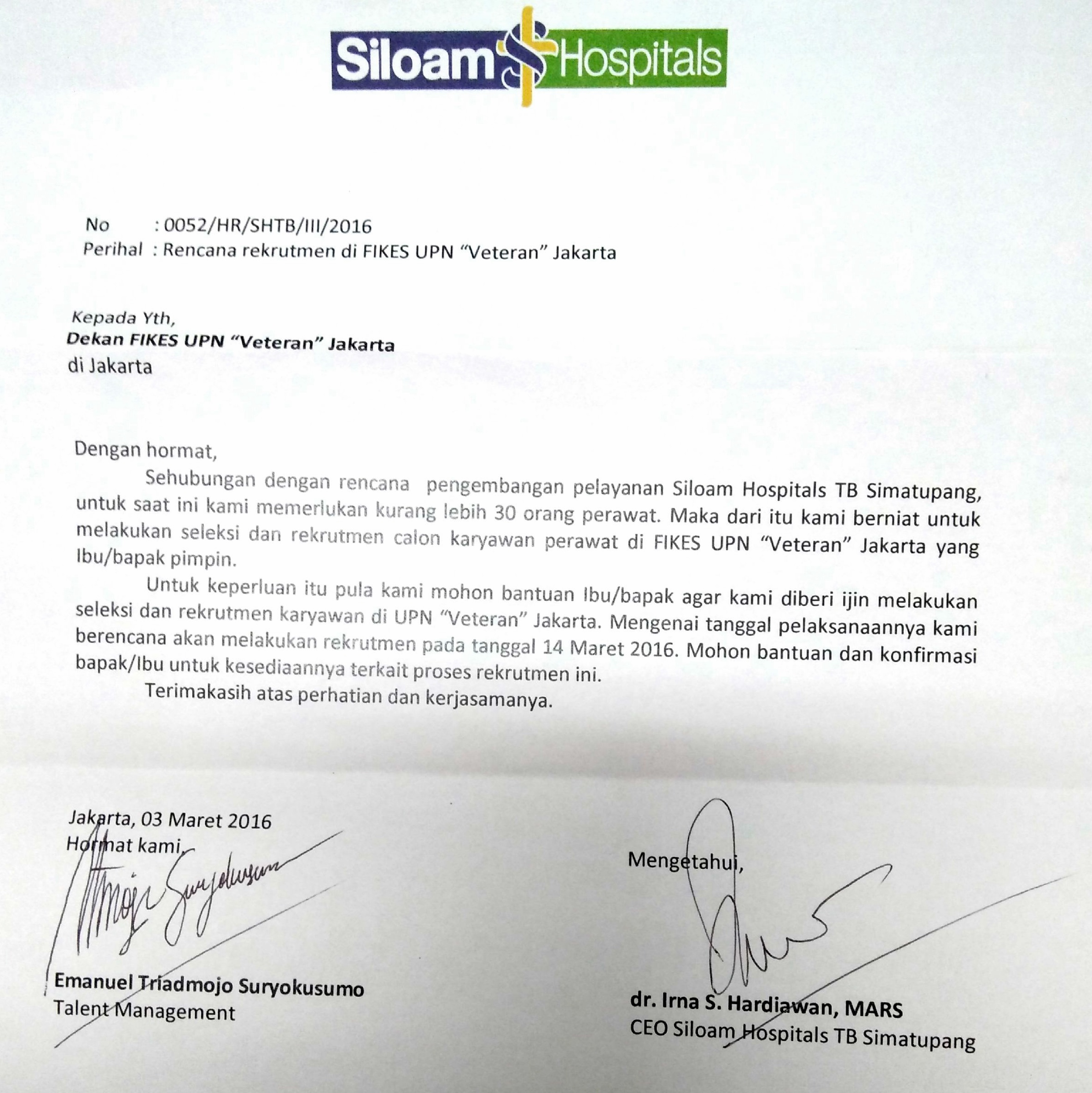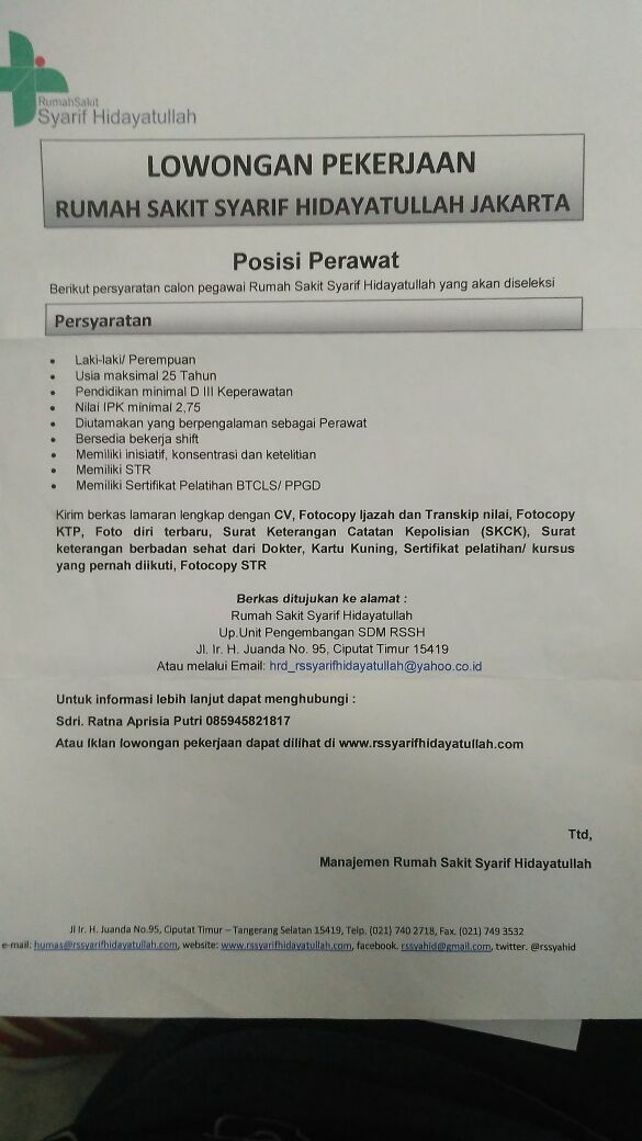 REKRUIMENT AKAN DILAKSANAKAN PADA TANGGAL 14 MARET 2016 JAM 08.00 DI KAMPUS LIMO RS SILOAM TB SIMATUPANG MEMBUTUHKAN TENAGA KEPERAWATAN D 3 KEPERAWATAN DAN NERS DENGANG PERSYARATAN : 1....