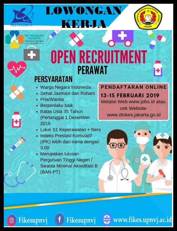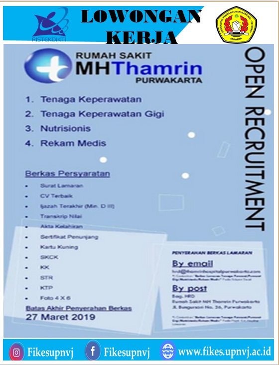 Kepada seluruh alumni Fakultas Ilmu Kesehatan Universitas Pembangunan Nasional "Veteran" Jakarta Program Studi DIII Keperawatan, Profesi Ners dan S1 Ilmu Gizi silakan kirimkan penyerahan berkas By Email : hrd@thamrinhospitalpurwakarta.com, By...