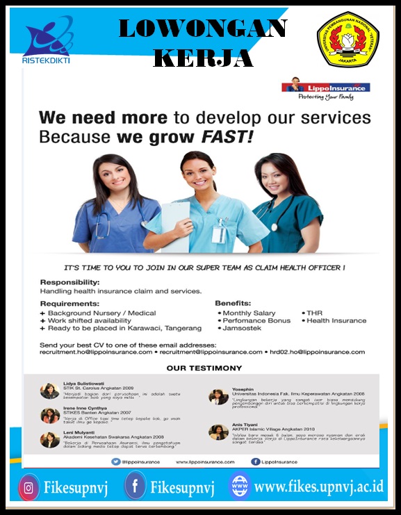 Fakultas Ilmu Kesehatan – Tanggal 11 Februari 2019 Untuk seluruh para Alumni Fakultas Ilmu Kesehatan Universitas Pembangunan Nasional "Veteran" Jakarta yang mau bergabung diperusahaan Lippo Insurance mari bergabung dan...