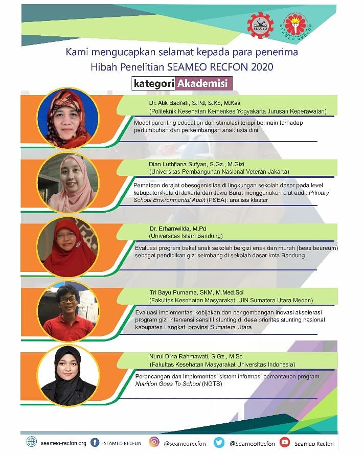 FIKES UPNVJ – Selamat Kepada Ibu Dian Luthfiana Sufyan, S.Gz., M.Gizi dari Program Studi S1 Ilmu Gizi UPN Veteran Jakarta yang telah mendapatkan Hibah Dana Penelitian SEAMEO RECFON 2020 sebesar...