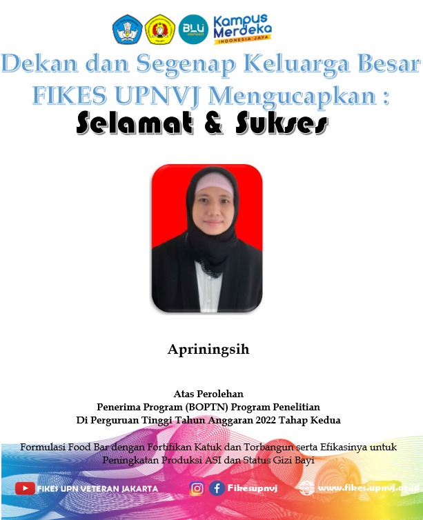 FIKES UPNVJ – Dekan dan Segenap Keluarga Besar Fakultas Ilmu Kesehatan UPN Veteran Jakarta Mengucapkan Selamat dan Sukses Kepada Dosen Program Studi Kesehatan Masyarakat Program Sarjana Apriningsih atas peraihan Penerima Program...