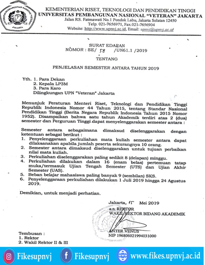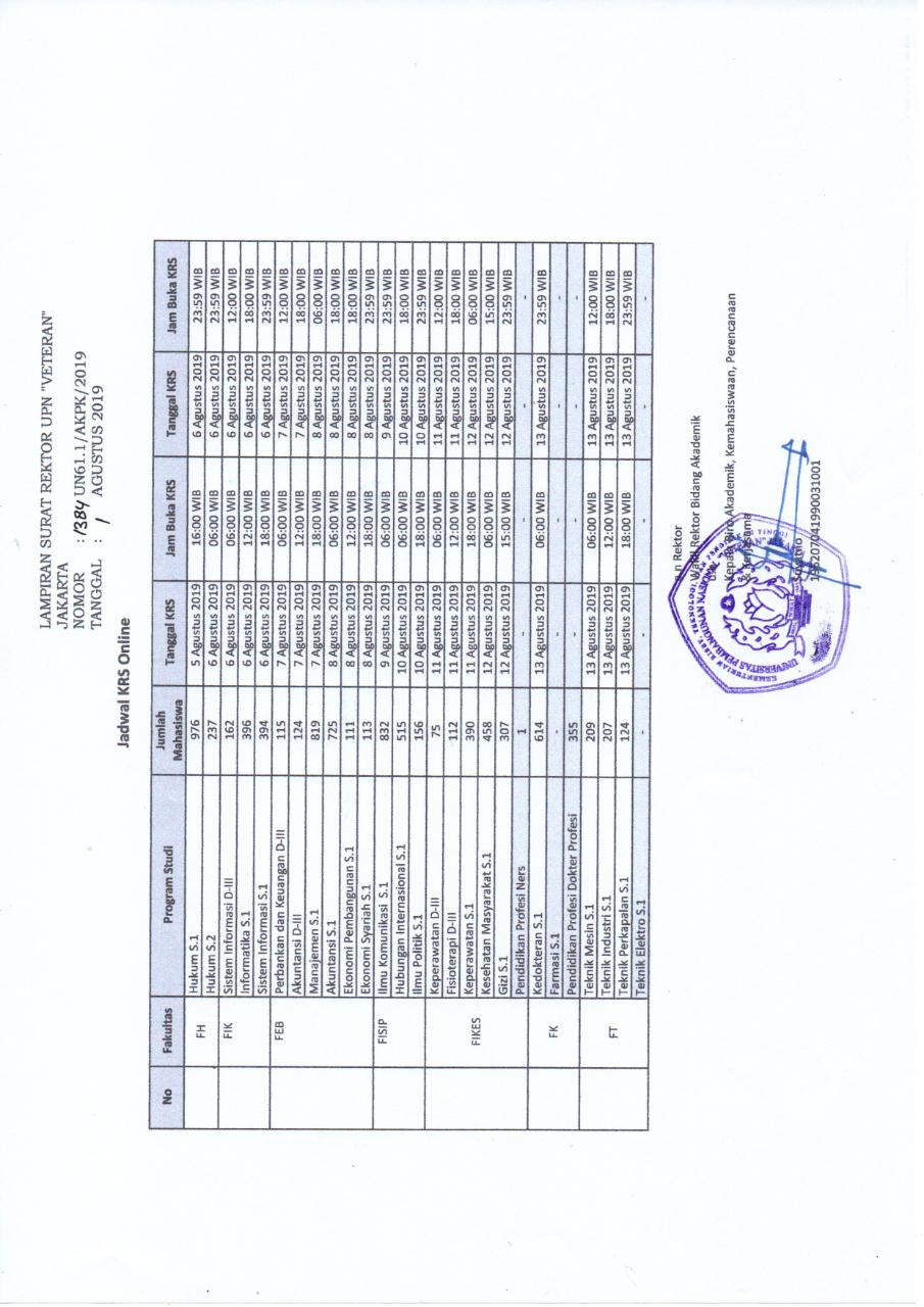Yth. Mahasiswa Program Sarjana Angkatan 2018 Di Lingkungan UPNV Jakarta Menindaklanjuti Keputusan Rektor Nomor : KEP/734/UN61/2018 Tanggal 1 Agustus 2018 tentang Kalender Akademik TA.2018/2019 dan...