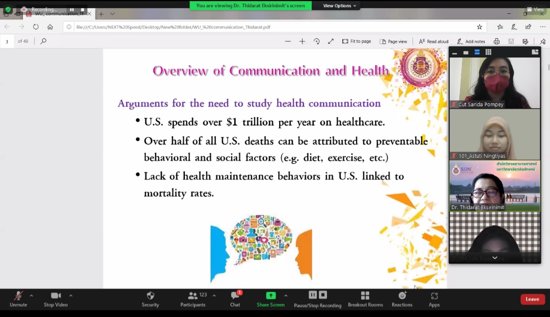 FIKES UPNVJ – Kelas Besar Komunikasi Dasar Keperawatan Mahasiswa S1-Keperawatan Angkatan 2021 dengan topik materi “Perspectives, Trend and Communication Issue in Health” yang dibawakan oleh dosen Dr. Thidarat Eksirinimit...