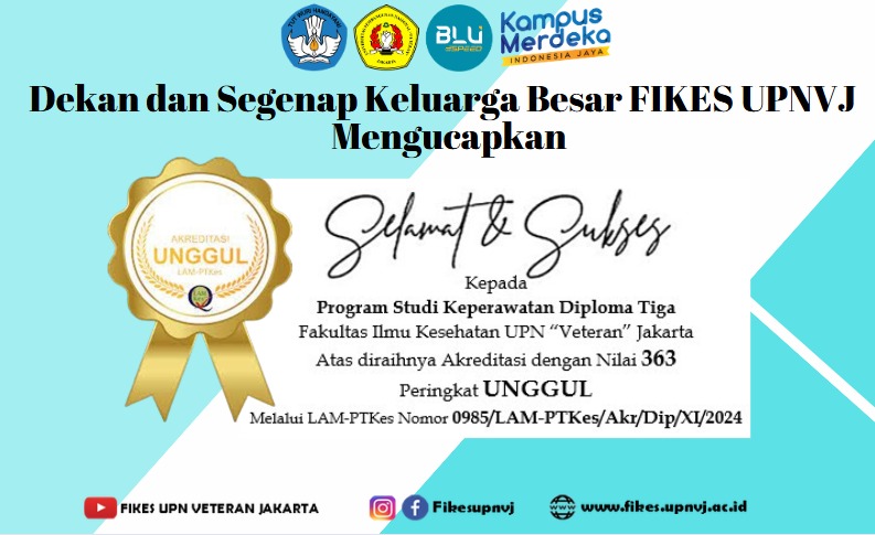 FIKES UPNVJ – Berdasarkan dengan SK LAM-PTKes Nomor 0985/LAM-PTKes/Akr/Dip/XI/ 2024 tentang Status, Nilai, dan Peringkat Akreditasi Program Studi Diploma Tiga Keperawatan Universitas Pembangunan Nasional "Veteran" Jakarta telah dinyatakan meraih predikat akreditasi UNGGUL. Dekan...