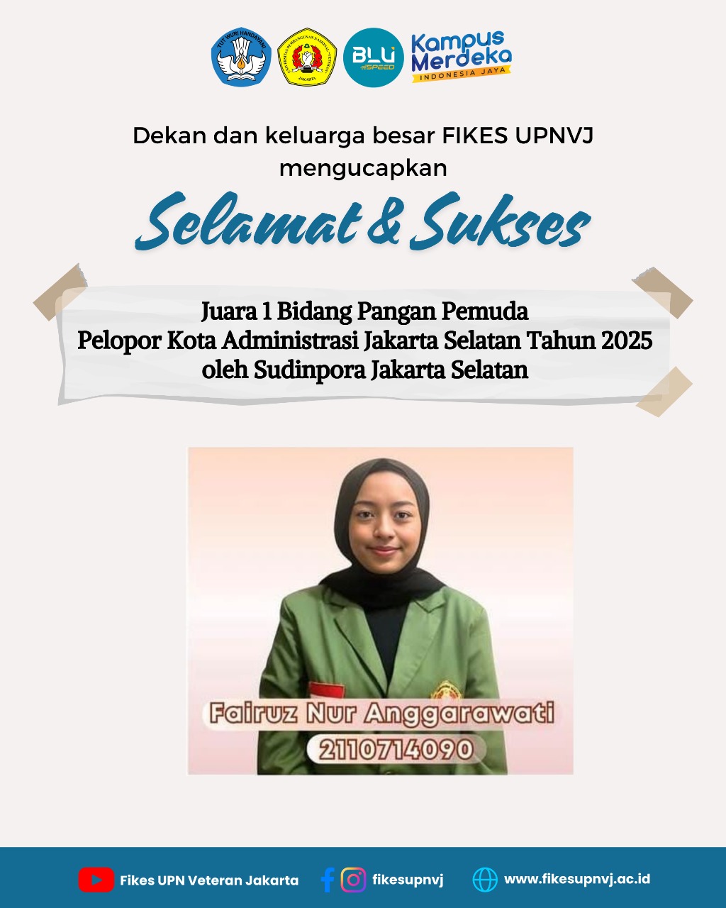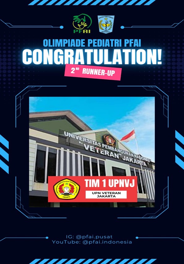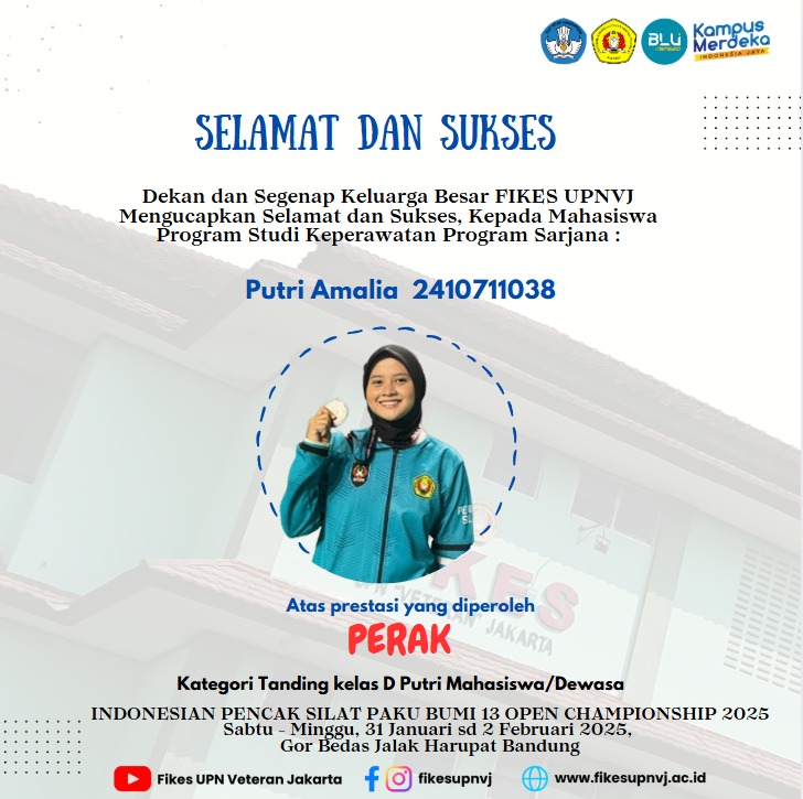 FIKES UPNVJ – Dekan dan Segenap Keluarga Besar FIKES UPN "Veteran" Jakarta Mengucapkan Selamat & Sukses Kepada Mahasiswi Program Studi Keperawatan Program Sarjana Putri Amalia 2410711038 Atas Perolehan Juara 3 Kejuaraan Indonesian...