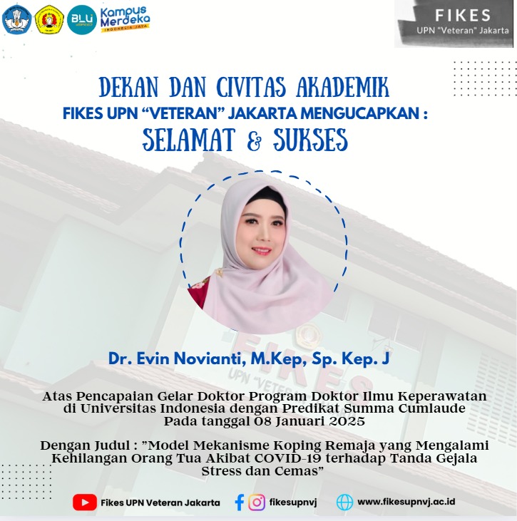 FIKES UPNVJ – Dekan dan segenap keluarga besar FIKES UPN "Veteran" Jakarta mengucapkan Selamat & Sukses Atas Pencapaian Gelar Doktor Program Doktor Ilmu Keperawatan Dr. Evin Novianti, M.Kep, Sp. Kep. J di Universitas Indonesia dengan Predikat...