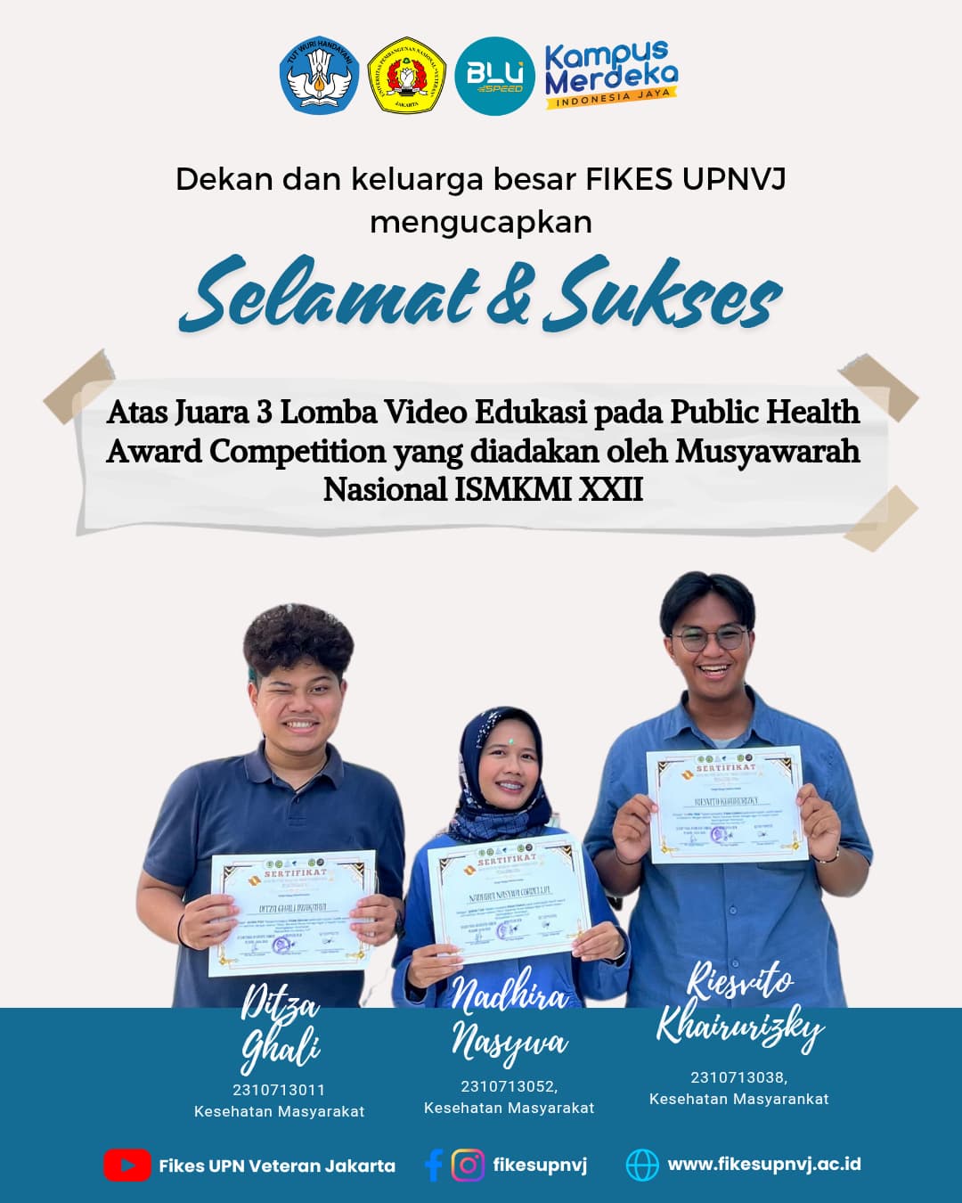 FIKES UPNVJ – Dekan dan Keluarga Besar Civitas Akademika FIKES UPN "Veteran" Jakarta Mengucapkan Selamat dan Sukses Kepada Mahasiswa Program Sarjana Kesehatan Masyarakat Program Sarjana dalam Rangka Lomba Public Health...