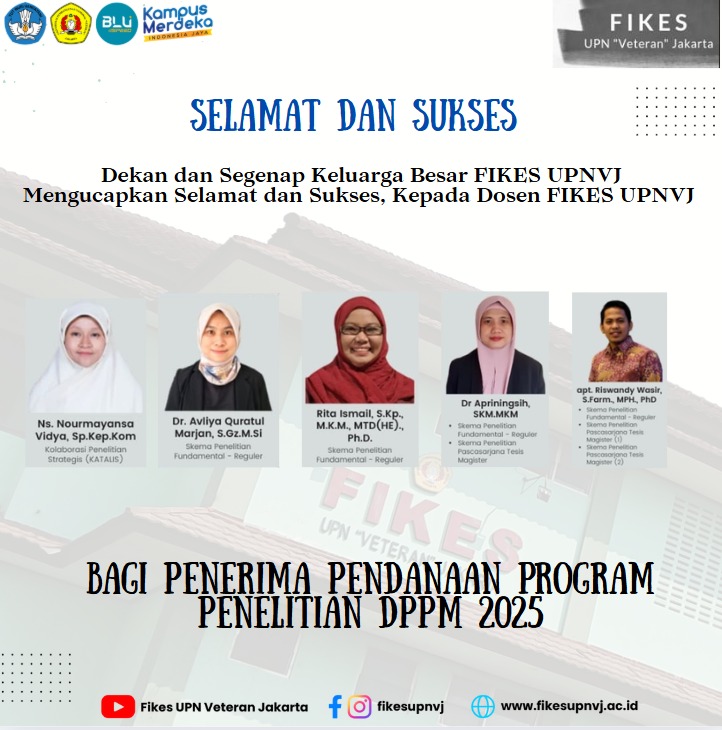 FIKES UPNVJ – Dekan dan Segenap Civitas Akademik FIKES UPN "Veteran" Jakarta Mengucapkan Selamat dan Sukses Kepada Dosen FIKES UPNVJ Bagi Penerima Pendanaan Program Penelitian DPPM 2025 1. Rita Ismail,...