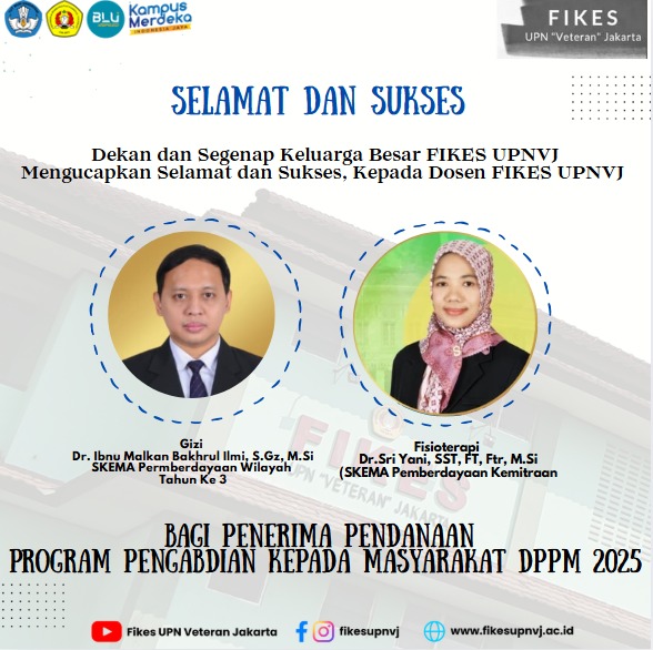 FIKES UPNVJ – Dekan dan Segenap Civitas Akademik FIKES UPN "Veteran" Jakarta Mengucapkan Selamat dan Sukses Kepada Dosen FIKES UPNVJ Bagi Penerima Pendanaan Program Pengabdian Kepada Masyarakat DPPM 2025 1. Dr. Ibnu Malkan Bakhrul...