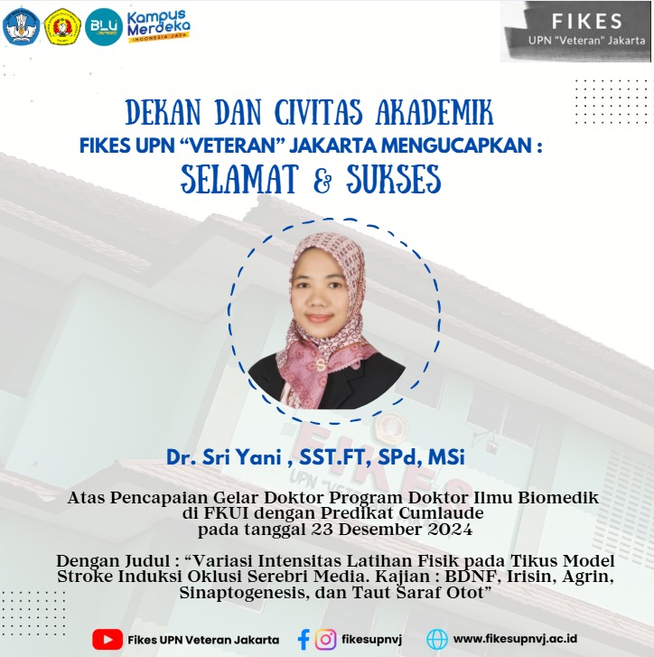 FIKES UPNVJ – Dekan dan segenap keluarga besar FIKES UPN "Veteran" Jakarta mengucapkan Selamat & Sukses Atas Pencapaian Gelar Doktor Program Doktor Ilmu Biomedik di FKUI dengan Predikat Cumlaude pada tanggal 23 Desember 2024...