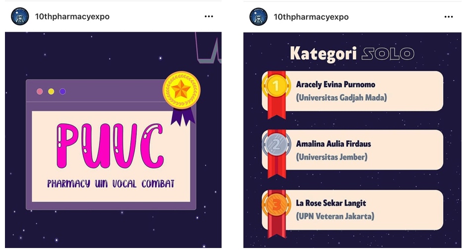 FIKES UPNVJ - Pada tanggal 22 Agustus 2021, mahasiswi Program Studi Kesehatan Masyarakat Program Sarjana Fakultas Ilmu Kesehatan Universitas Pembangunan Nasional Veteran mendapatkan juara III pada lomba Solo Vocal Pharmacy...