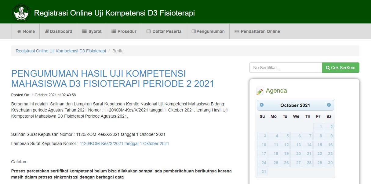 FIKES UPNVJ – Selamat Kepada Mahasiswa DIII Fisioterapi Universitas Pembangunan Nasional "Veteran" Jakarta yang mendapatkan 95,74 % dalam Ujian Kompetensi. Bersama ini adalah Salinan dan Lampiran Surat Keputusan Komite Nasional Uji...