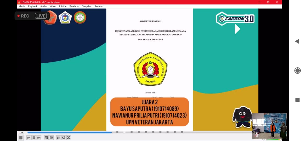 FIKES UPNVJ - Selamat Kepada Tim Mahasiswa dari Program Studi Ilmu Gizi Pendidikan Sarjana Fakultas Ilmu Kesehatan Universitas Pembangunan Nasional Veteran Jakarta yang mendapatkan Juara 2 dalam Rangka KMI 2020 Award Kategoris...