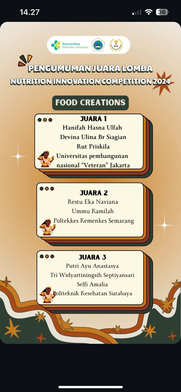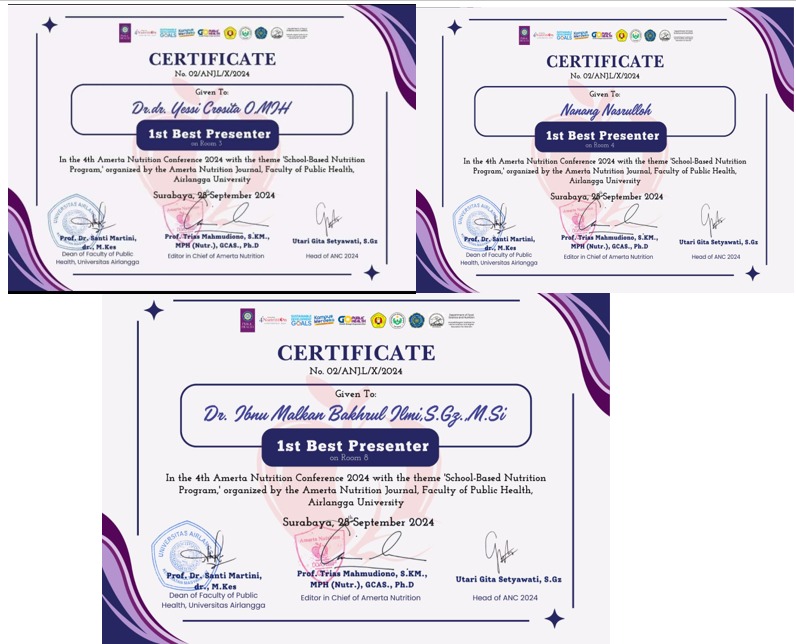 FIKES UPNVJ – Dekan dan Keluarga Besar Fakultas Ilmu Kesehatan UPN "Veteran" Jakarta mengucapkan Selamat Dan Sukses Kepada Malin Nur Aeni, Thifal Hazimah Al Insyirah, Shalma Devi Dosen Pembimbing : Nanang Nasrullah, STP,M.Si Atas prestasinya...