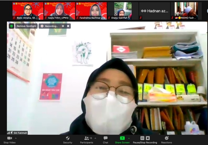 FIKES UPNVJ - Dosen Fakultas Kesehatan UPN Veteran Jakarta selalu ingin berinovasi dalam melaksanakan Tri Dharma Perguruan Tinggi dengan membantu pemerintah dalam menghadapi pandemi Covid-19. Pada 23 Juni 2021 telah dilaksanakan Program Pengabdian Kepada Masyarakat (PKM) yang diinisiasi oleh dosen Fakultas Ilmu Kesehatan UPN Veteran Jakarta yaitu Nayla Kamilia Fithri, SKM., MPH. (Prodi S1 Kesehatan Masyarakat), Rizki Amalia, SKM., MHSc. (Prodi S1 Kesehatan Masyarakat) dan Farahdina Bachtiar, S.Ft., Physio, M.Sc. (Prodi Fisioterapi). Kegiatan ini dilaksanakan secara daring dengan mengusung tema “Sosialisasi dan Praktek Pengelolaan Sampah Masker pada Siswa Siswi Sekolah Dasar (SD) Khalifah Depok dalam Rangka Kewaspadaan Covid-19”.