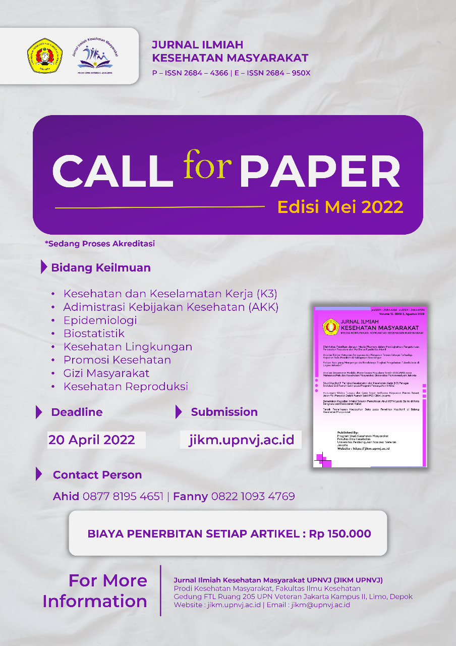 JIKM Call for Paper Edisi Mei 2022 April 11, 2022 Admin 0 Share Good ThingsFIKES UPNVJ – Jurnal Ilmiah Kesehatan Masyarakat Call For Paper Edisi Mei 2022, Deadline 20 April 2022 Contact Person Ahid 0877-8195-4651 dan Fanny 0822-1093-4769 Post Views: 15