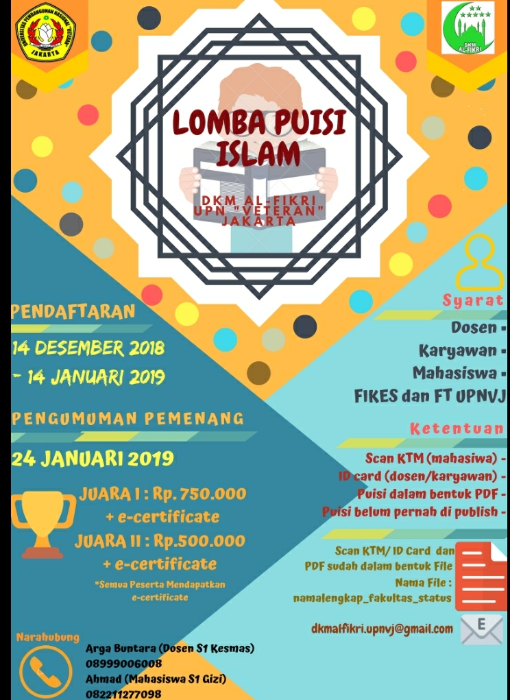 Kami dari DKM AL-FIKRI UPN Veteran Jakarta mengajak kepada mahasiswa, dosen, karyawan FIKES dan FT untuk ikut serta dalam