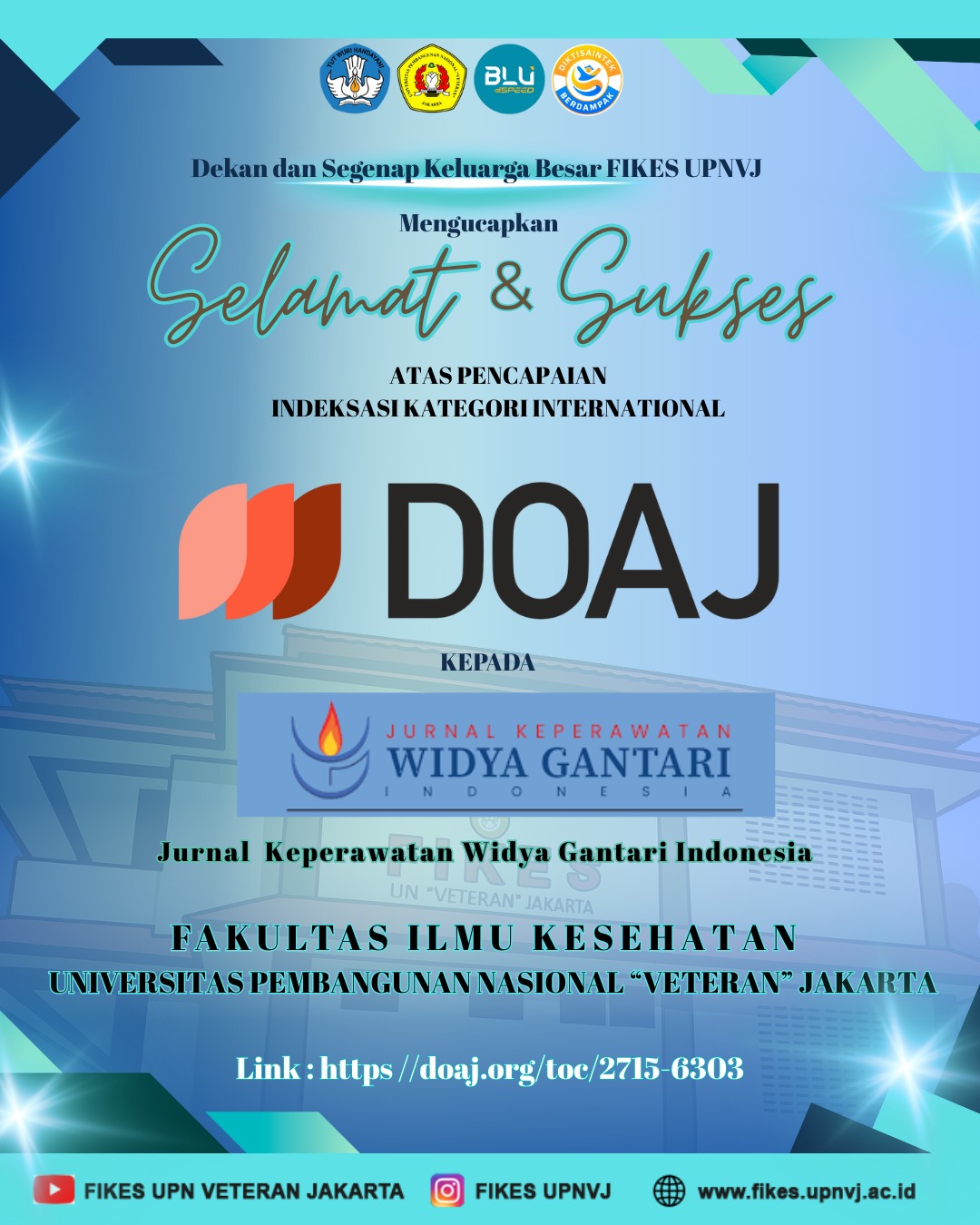FIKES UPNVJ – Dekan dan Segenap CIVITAS Akademik FIKES UPN "Veteran" Jakarta Mengucapkan Selamat dan Sukses Kepada Jurnal Keperawatan Widya Gantari Indonesia (JKGWI) atas Penerimaan Indeksasi Kategori International DOAJ.