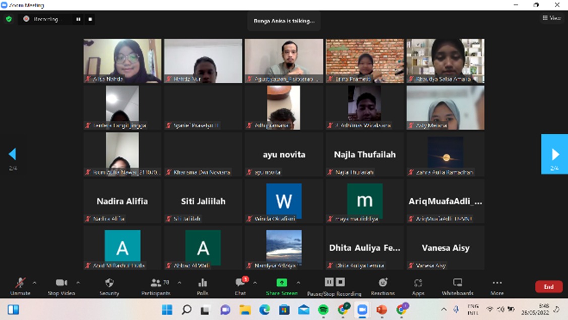 Acara selanjutnya yaitu sesi tanya jawab dan sharing session oleh Bapak Agustiyawan, SST. FT, M. Fis, Ftr, AIFO dan Nabila Rubianti Mahasiswa Fisioterapi Program Studi Program Diploma Tiga Fakultas Ilmu Kesehatan UPN Veteran Jakarta Angkatan 2019.
