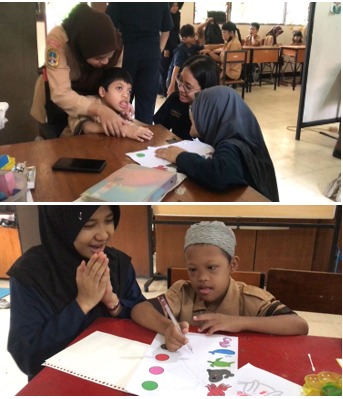 Rangkaian acara selanjutnya adalah observasi dan pengukuran di ruang 2 yang terdiri dari kelas 2 dan kelas 3. Observasi yang dilakukan sama dengan observasi yang sudah dilakukan di ruang 1 yaitu melihat kemampuan kognitif masing-masing anak serta pemahaman yang disampaikan oleh pemeriksa. Kondisi siswa-siswi di SLB Ulaka Penca sangat beragam mulai dari anak dengan Autism Spectrum Disorder (ASD), Down Syndrome (DS), Attention Deficit Hyperactivity Disorder (ADHD), Slow-learner, hingga Cerebral Palsy (CP). Perbedaan kondisi pada setiap anak menunjukkan hasil yang beragam. Kegiatan observasi diakhiri dengan tour sekolah bersama dengan Kepala SLB Ibu Ratmartini, M.Pd. dan Dosen Pembimbing Kelompok 2 Ibu Rena Mailani, S. FT, M.Biomed, AIFO. Kegiatan di akhiri dengan sesi foto bersama dengan kepala SLB, dosen pembimbing kelompok, dan seluruh anggota kelompok 2.