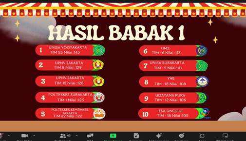 FIKES UPNVJ – Lomba Nasional Lomba PFAI Olympic Competition 2024 merupakan kompetensi dalam bidang akademik dan non-akademik yang diperuntukkan bagi mahasiswa program studi fisioterapi yang diselenggarakan oleh Perhimpunan Fisioterapi Anak Indonesia (PFAI). Lomba Nasional PFAI 2024 menjadi ajang dimana mahasiswa dituntut untuk dapat berpikir secara kritis dalam mengingat serta menguasai materi maupun praktik yang telah diperoleh mahasiswa. Perlombaan Cerdas Cermat terdiri atas tiga babak, dimana bentuk soal yang disajikan oleh panitia pelaksana pada babak pertama berupa pilihan ganda, dimana peserta diminta untuk mengakses google form melalui Safe Exam Browser (SEB) dalam pengisiannya selama 60 menit, kemudian jumlah skor dalam satu tim akan diakumulasikan. Pada babak kedua, masing-masing tim diminta untuk memasuki break out room secara bergiliran untuk menjawab pernyataan ‘benar’ atau ‘salah’ yang berisikan pernyataan yang berkaitan dengan kasus typical dan atypical development serta intervensi fisioterapinya pada anak secara lisan selama 15 menit. Pada babak final, masing-masing tim diminta untuk memasuki break out room secara bergiliran untuk menjawab soal yang berisikan kasus typical dan atypical development pada anak dan diminta untuk menjelaskan patolofisiologi serta prosedur penatalaksanaan fisioterapi pada anak tersebut.